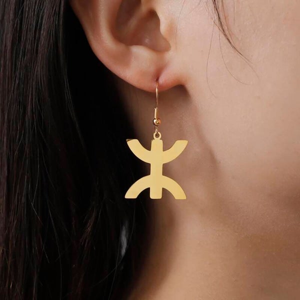 Boucles d'oreilles "Kabyle"" pendantes dorées en acier inoxydable
