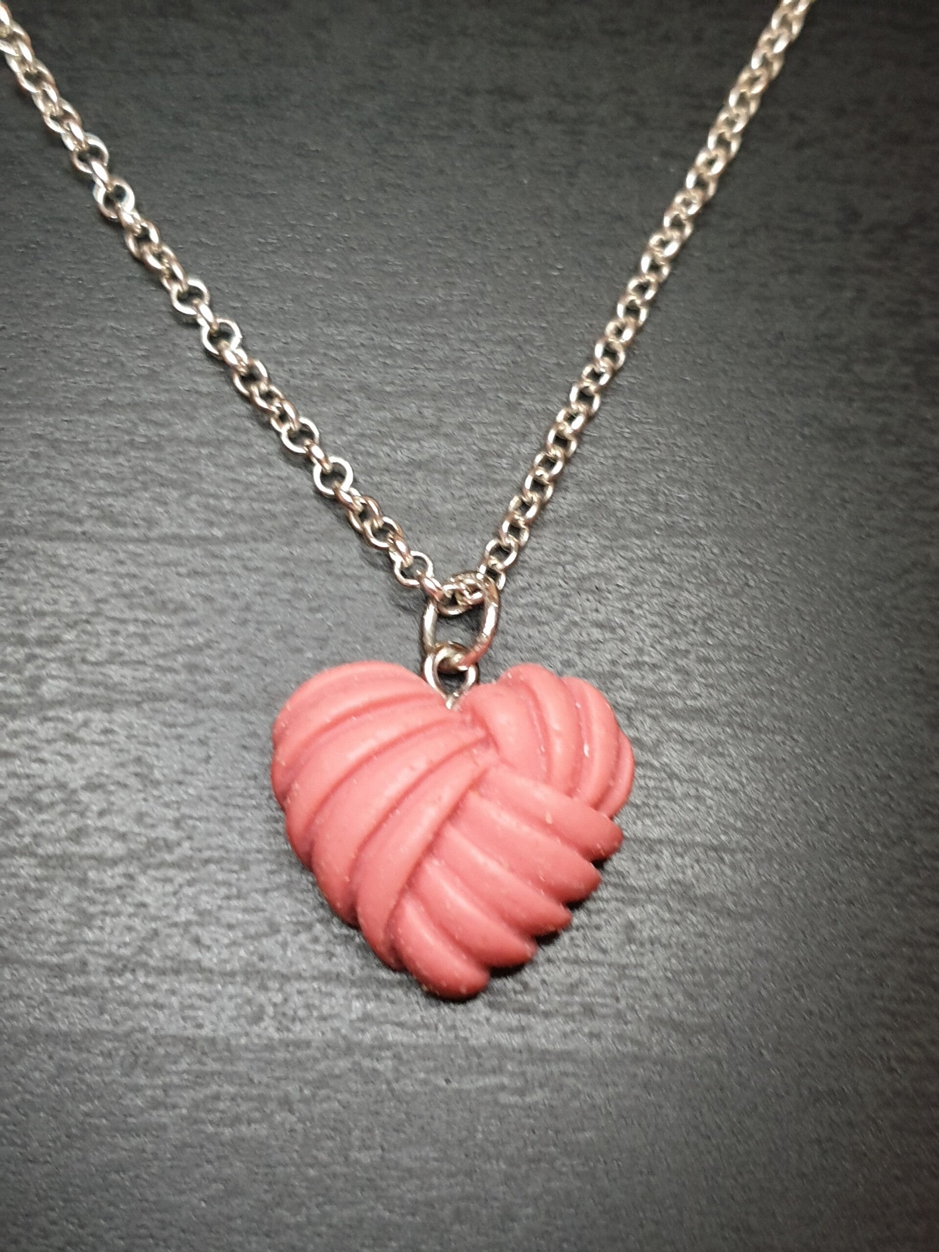 Collier fantaisie "Cœur tressé" rouge