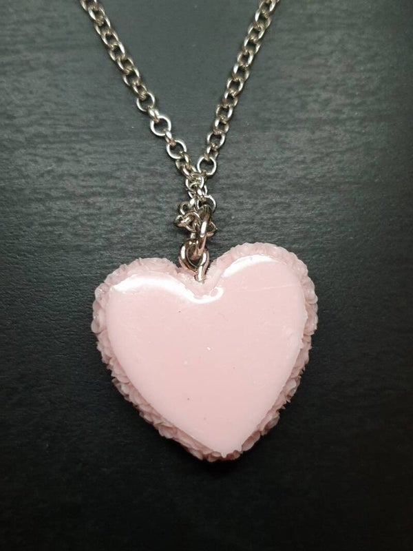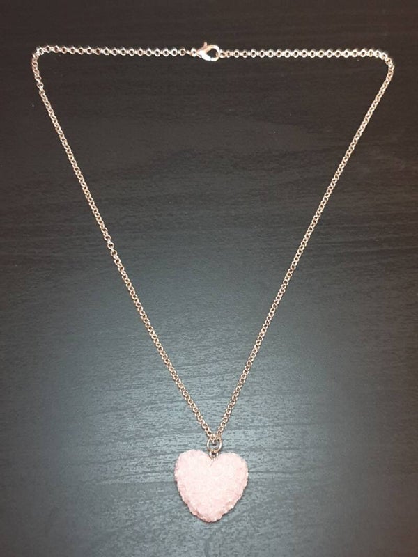Collier fantaisie "Cœur fleurs" rose clair