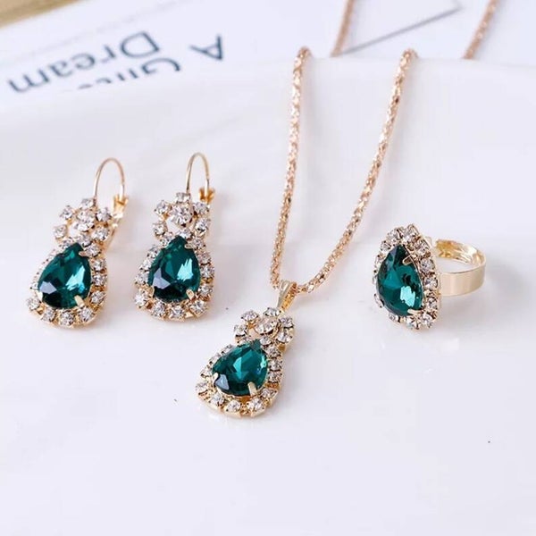 Parure "Goutte" 3 pièces verte