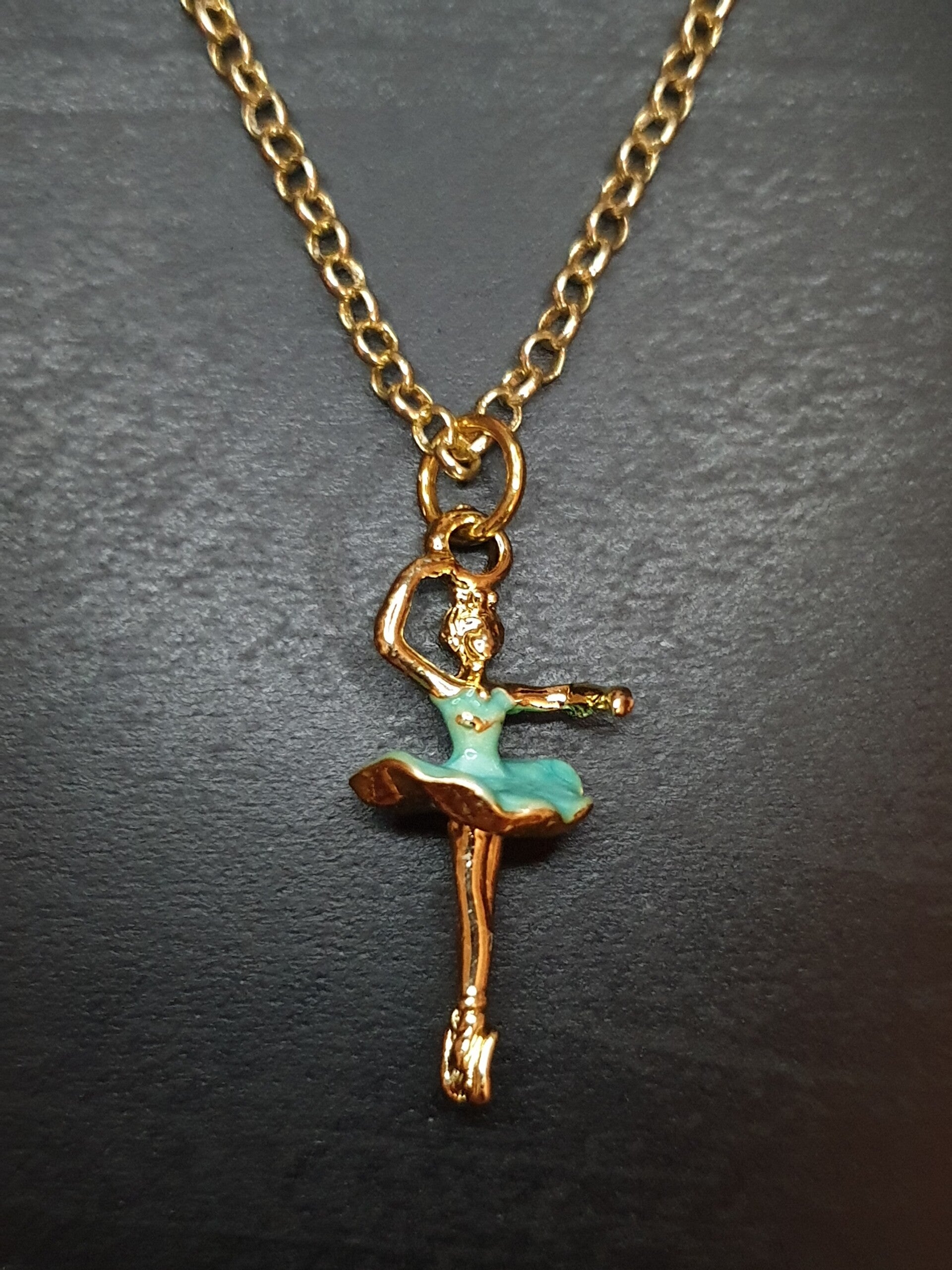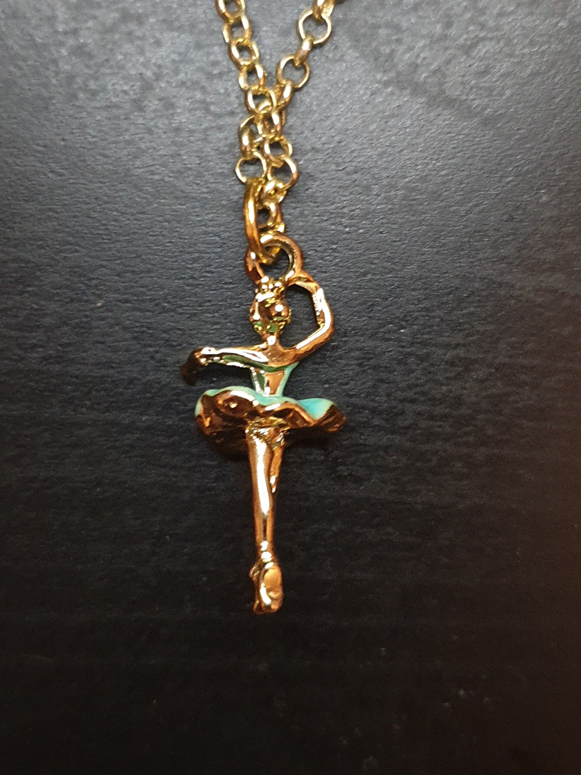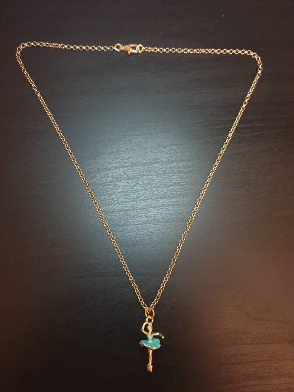Collier fantaisie "Ballerine" vert d'eau doré