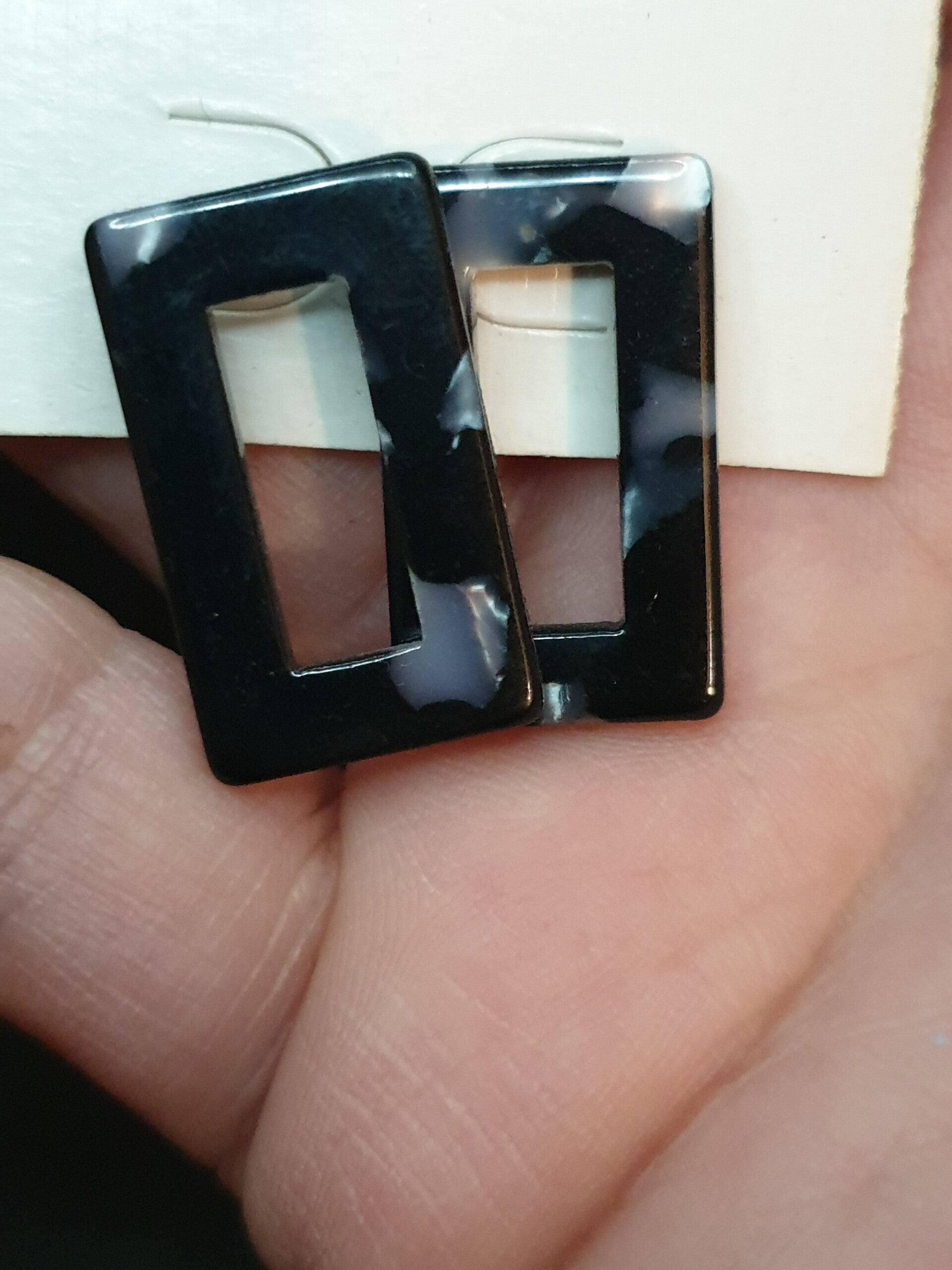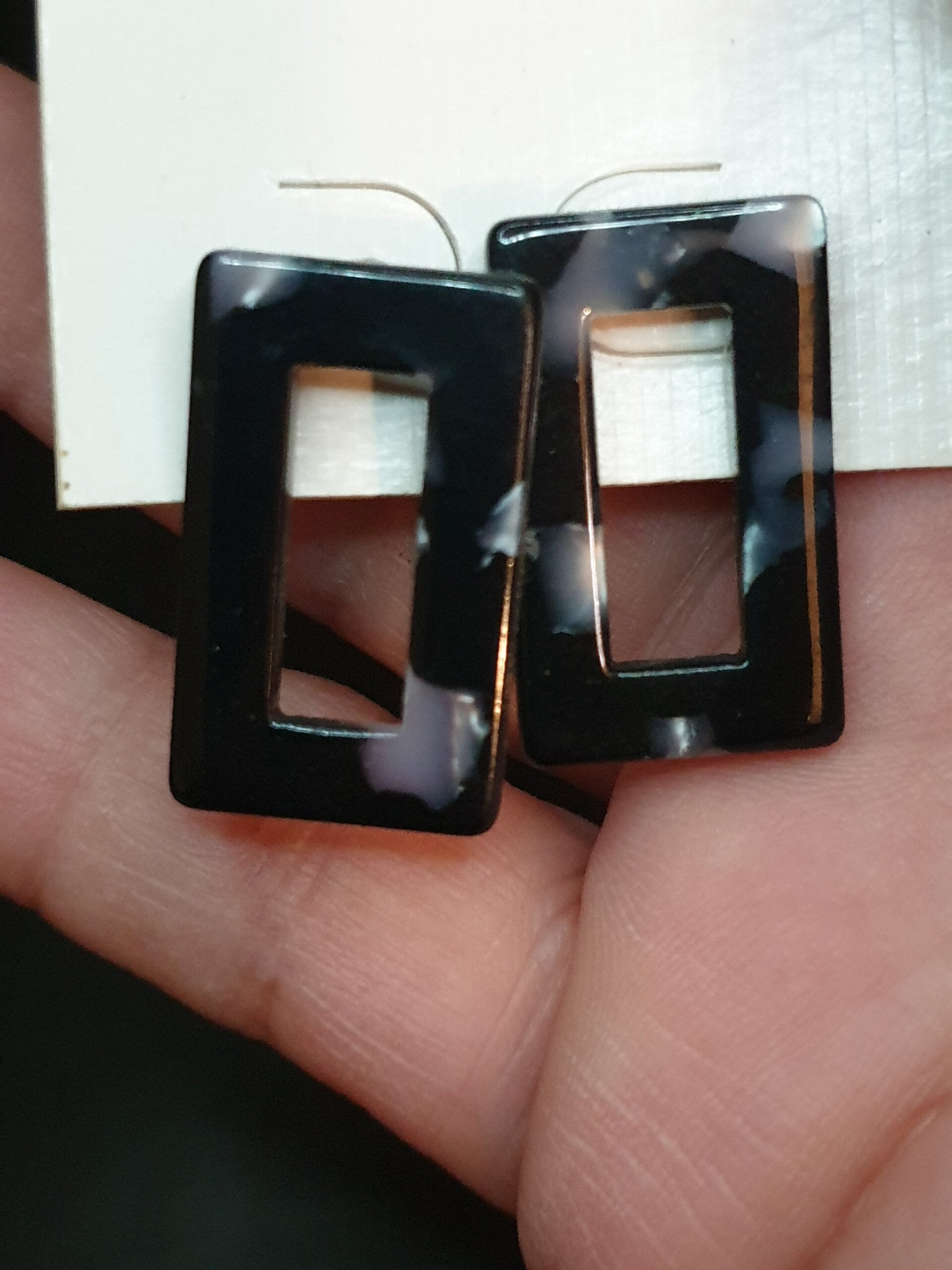 Boucles d'oreilles fantaisie rectangle noir et blanc