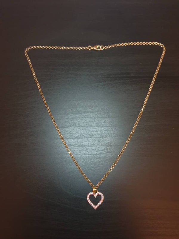 Collier fantaisie "Cœur diamant" doré et rose