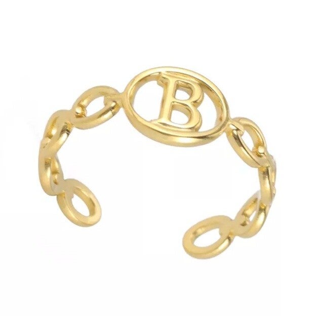 Bague fantaisie ajustable "B" dorée