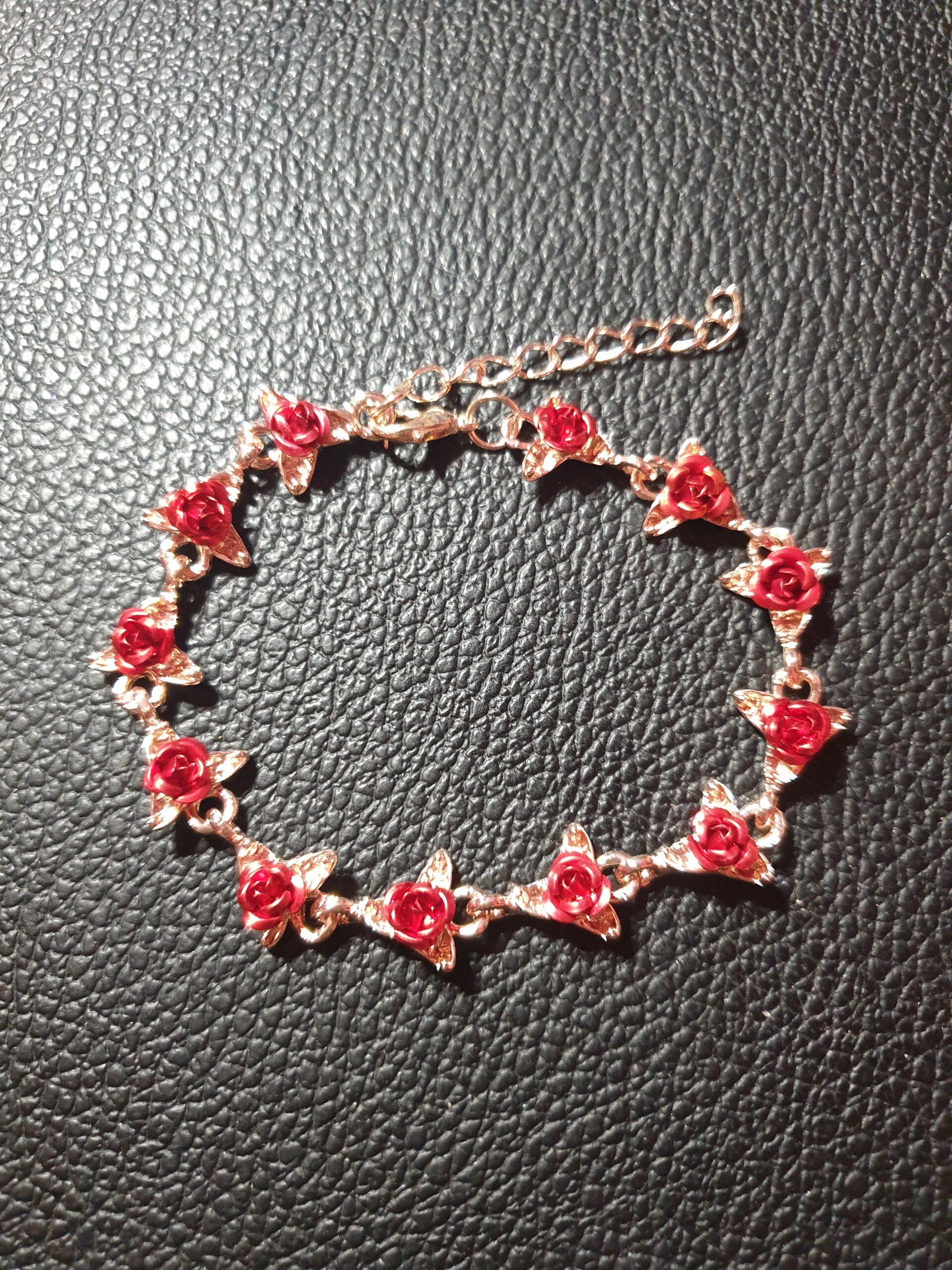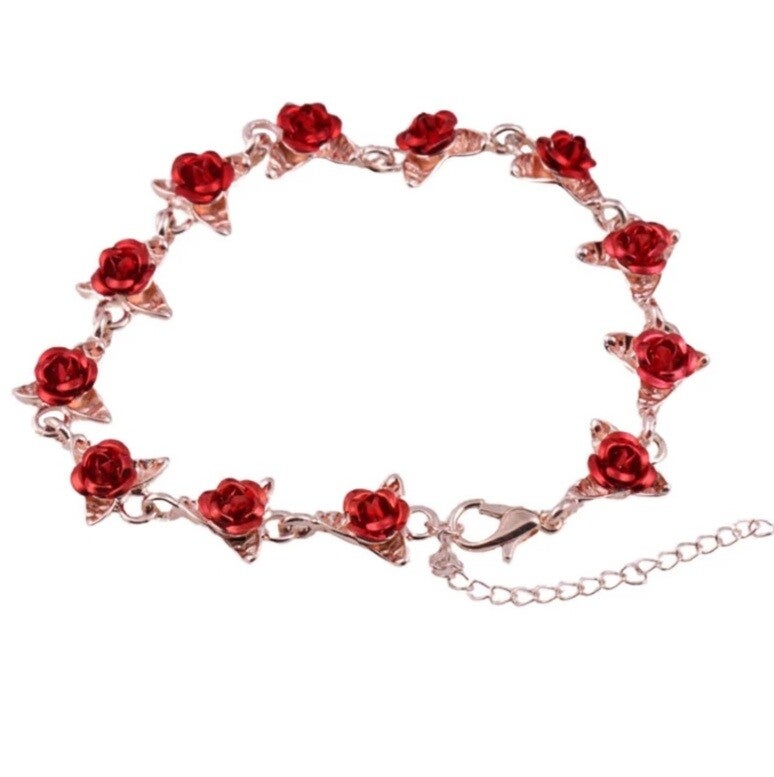 Bracelet fantaisie "Roses rouges" rose gold