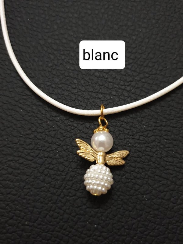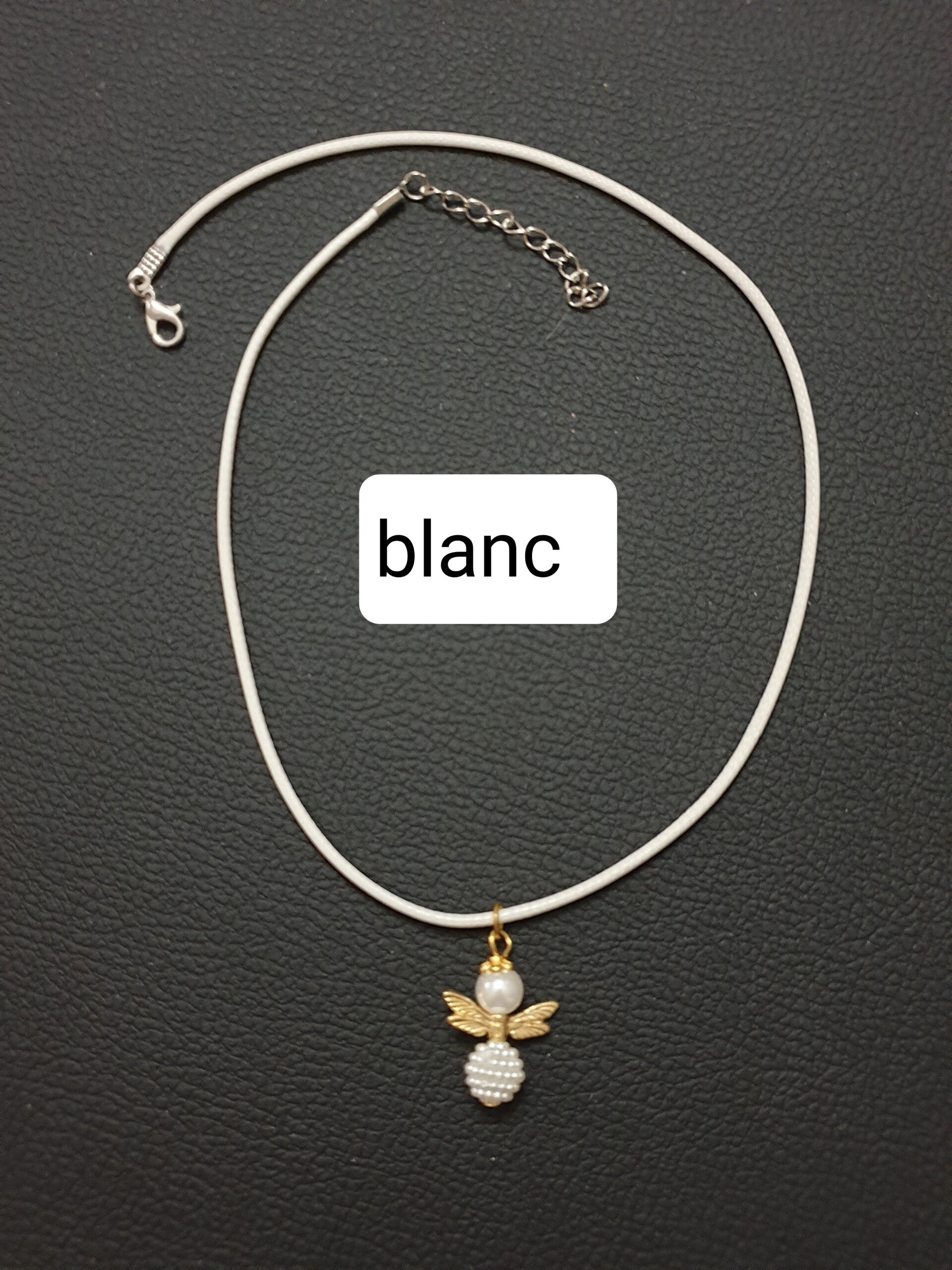 Collier Ange disco doré cordon blanc